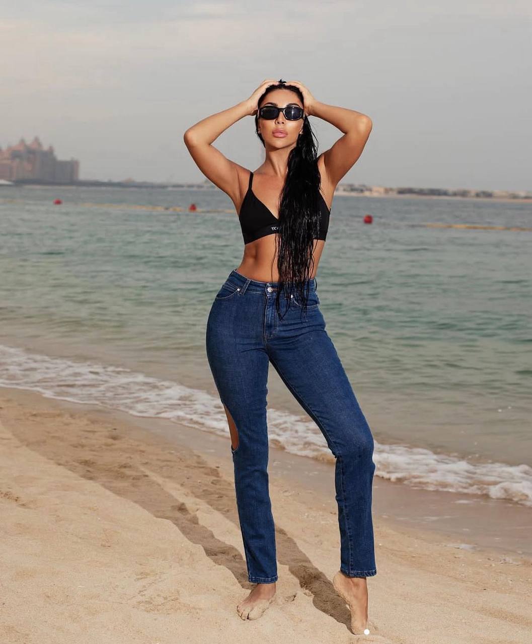 Джинсы скинни с вырезами